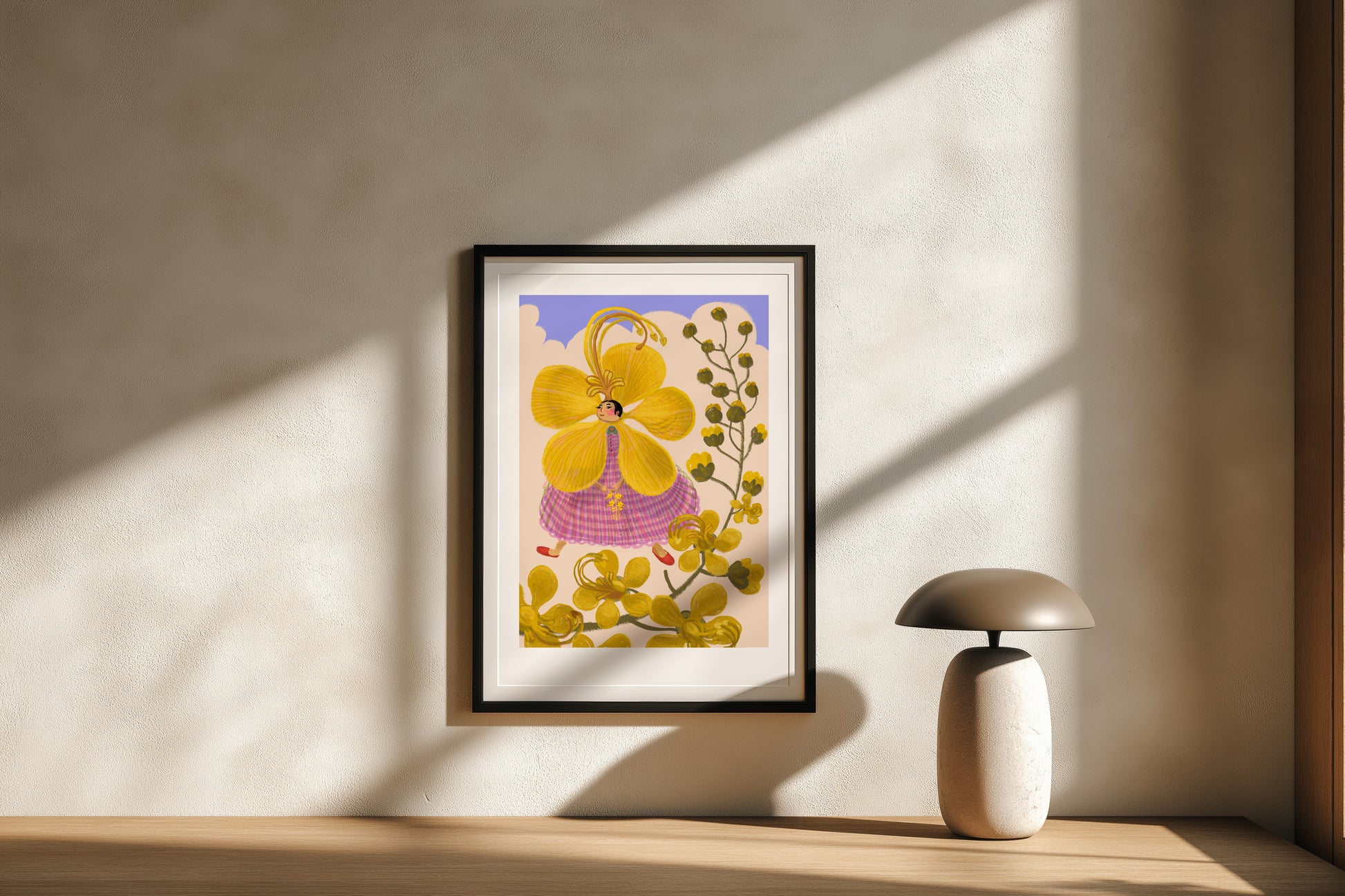 When the golden laburnum blooms, it transforms entire gardens into cascades of sunshine. This spirited flower girl embodies that same joyful abundance. A perfect addition to spaces that need a touch of whimsy and warmth.